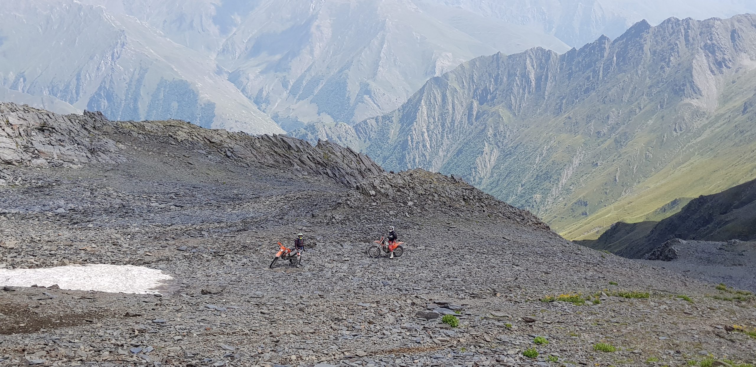 Our enduro day starts towards Omalo. Then we ride on Georgia’s highest and narrowest gravel road, which winds through the breathtaking, untouched mountain landscape of the Caucasus, to the Abano Pass at an impressive 2,926 meters above sea level.
